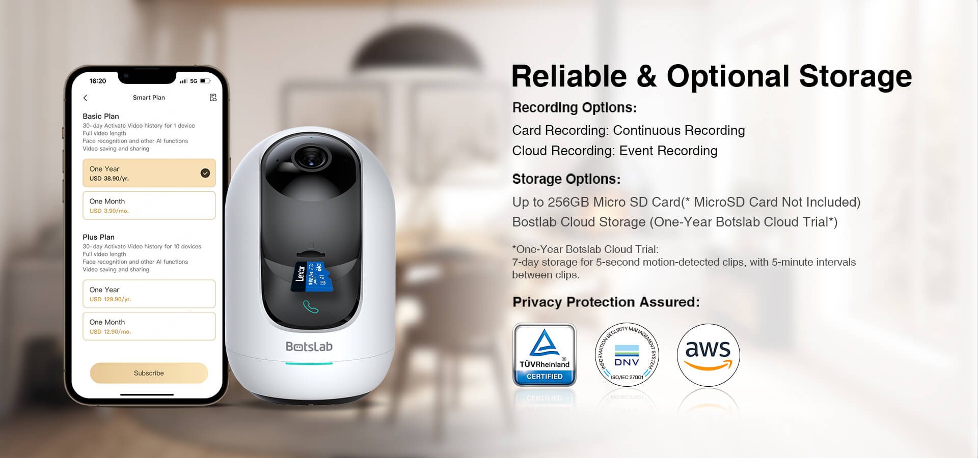 Botslab Cloud is a cloud-based video storage service offered by BOTSLAB INC. for certain smart video cameras that are compatible with the Botslab App. Botslab Cloud encompasses a range of security monitoring and cloud video storage features based on technologies such as moving object detection (MOD), face and human detection, and facial recognition.
