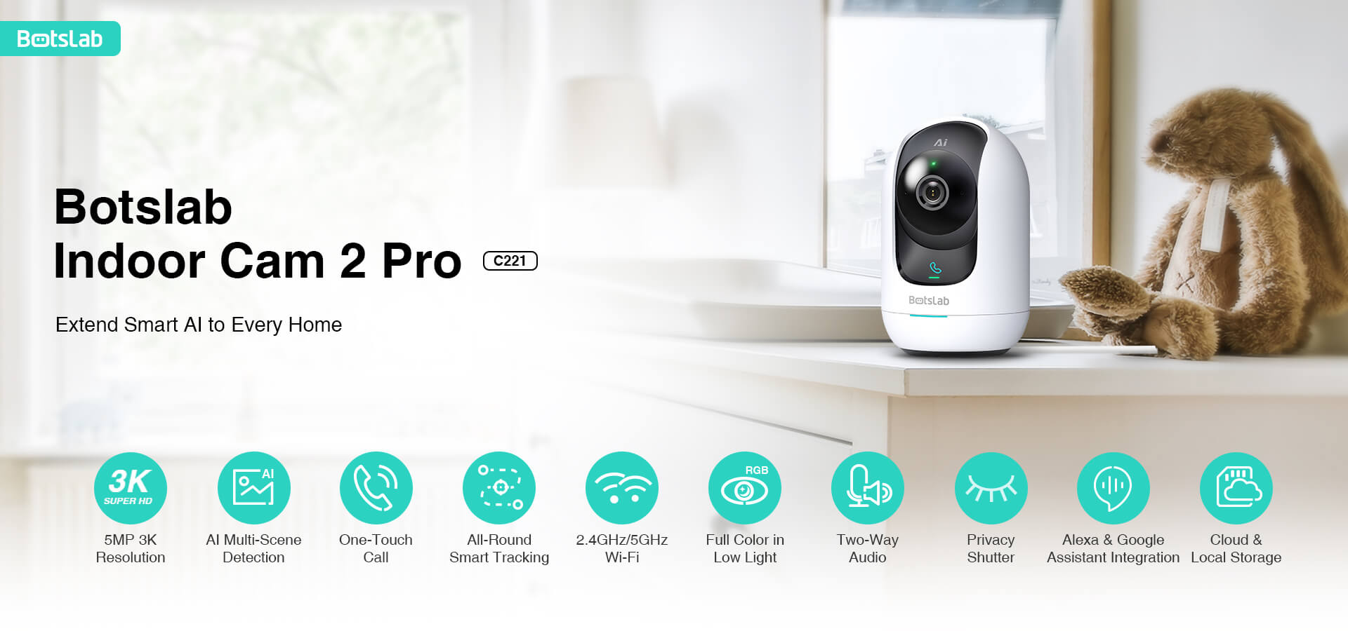 Botslab AI 3K Smart Tracking Indoor Security Camera C221