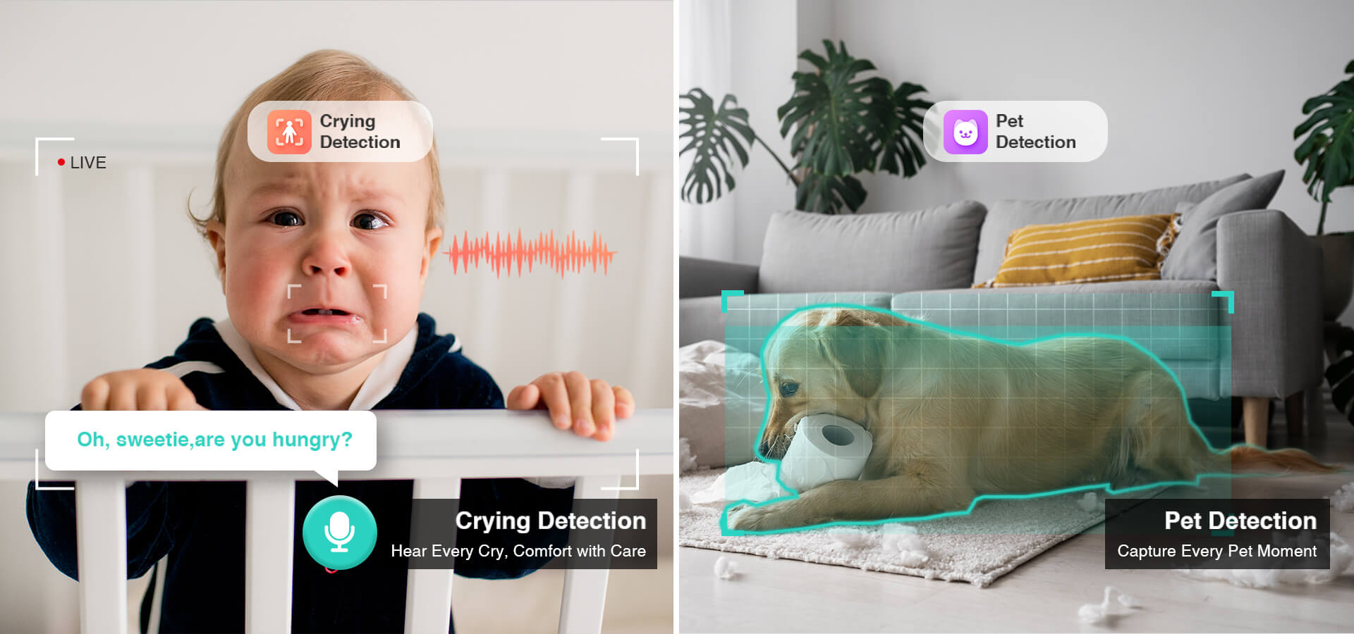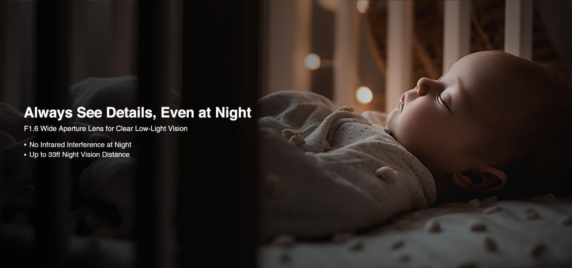 With the improved night vision feature provides crystal clear images up to 10 meters away, even without ambient light, perfect for keeping an eye on your babies or pets without disturbing their sleep at night.