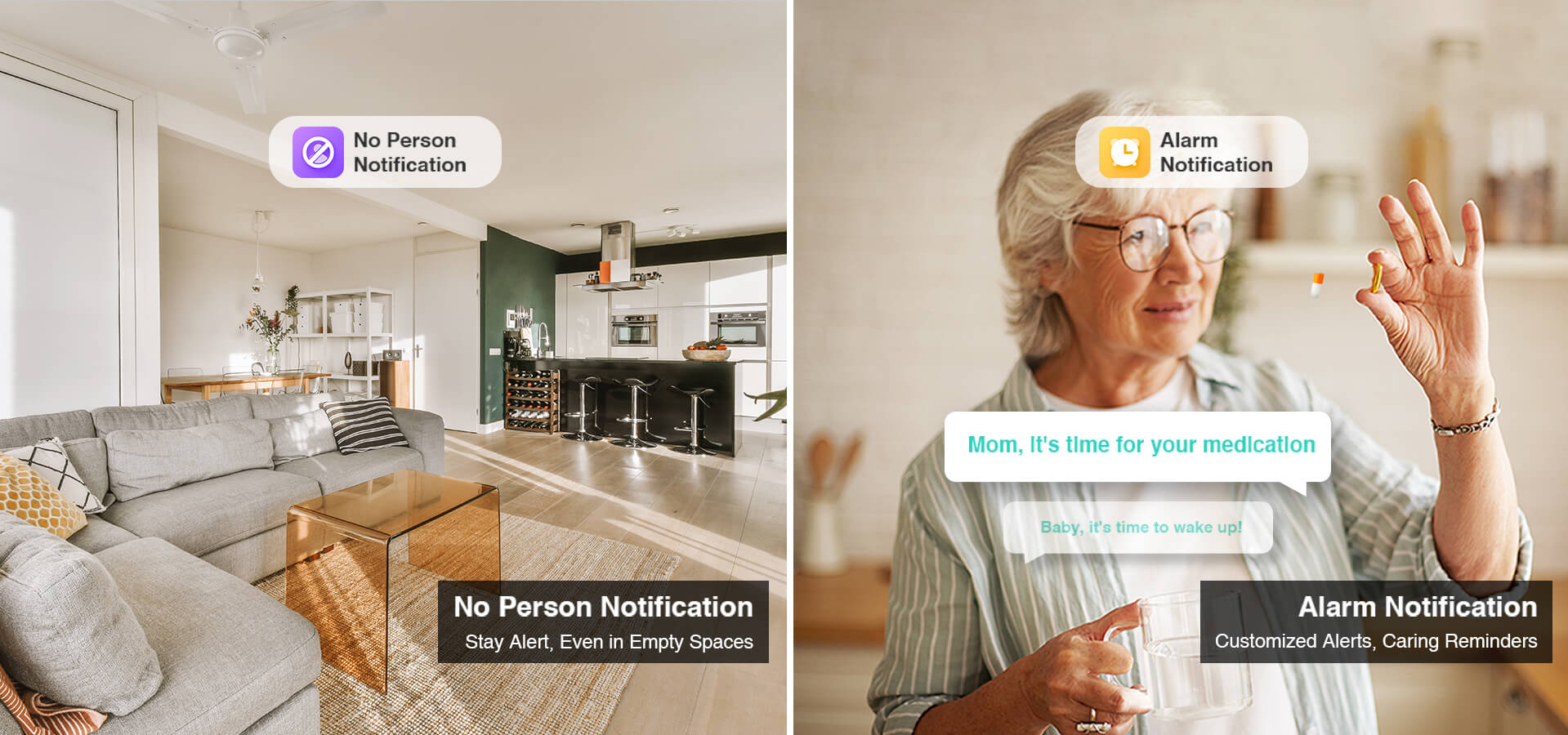 Yes, this security camera does have two-way audio, allowing you to talk to your baby or parent when you miss them, or remind your baby when they need help.