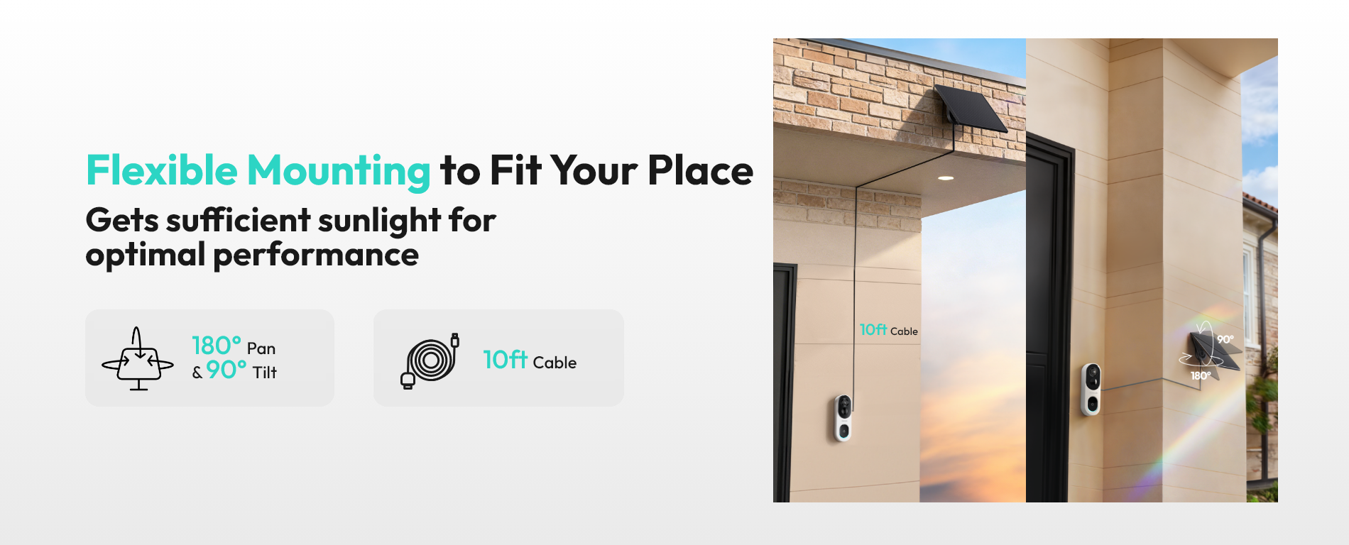 Keeps your video doorbell powered throughout the day, reducing manual recharging and ensuring uninterrupted home security.