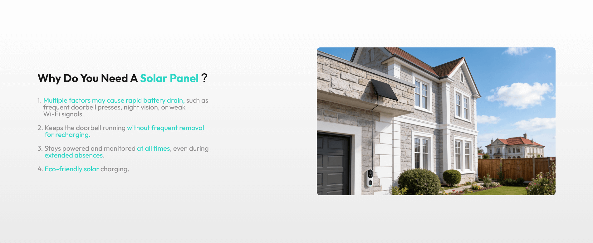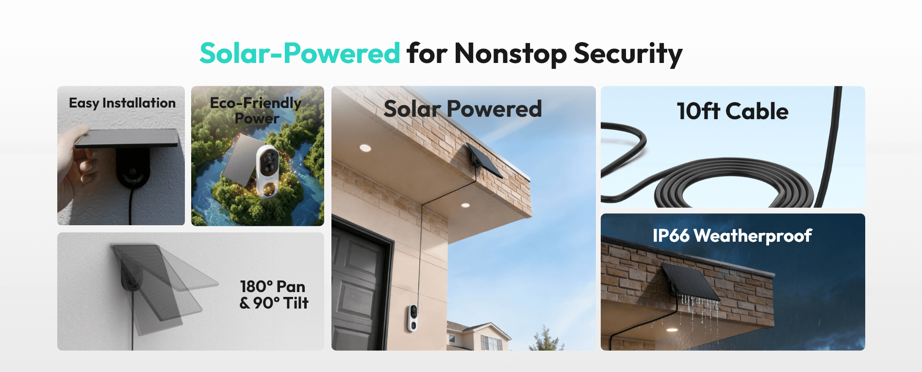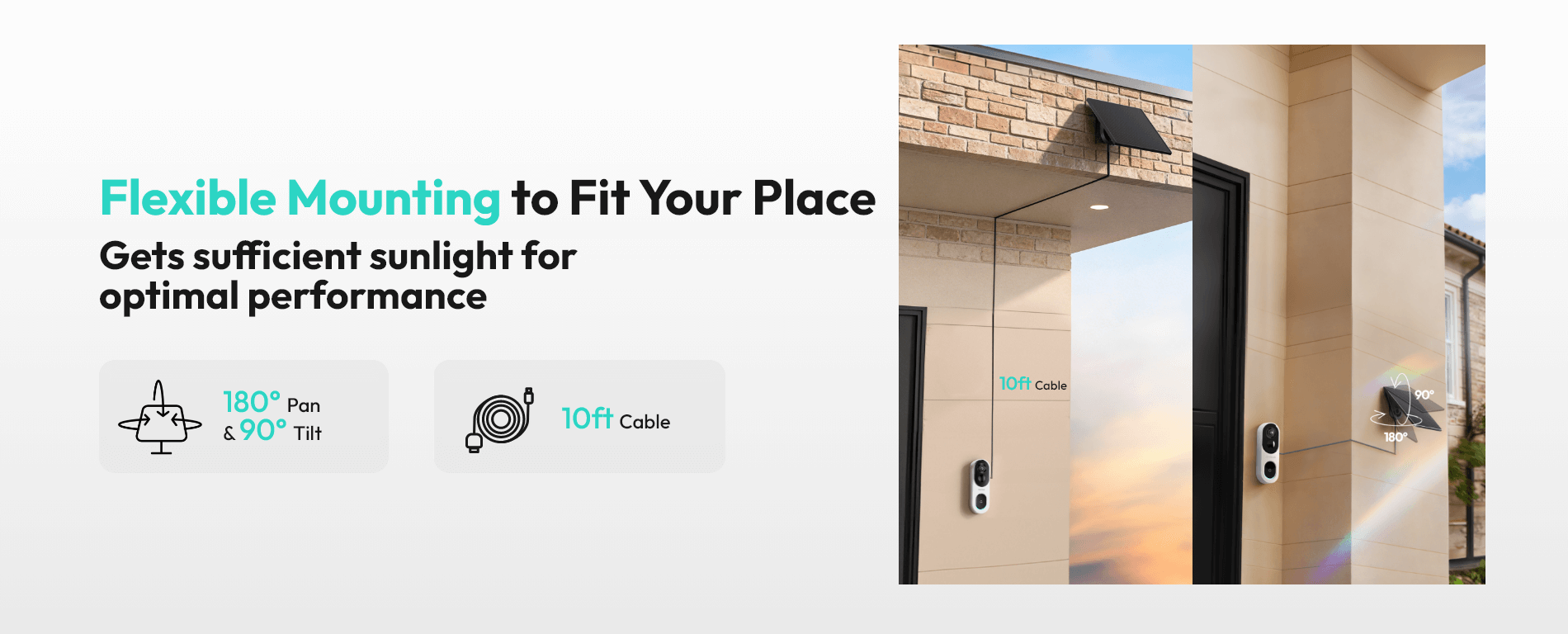 Keeps your video doorbell powered throughout the day, reducing manual recharging and ensuring uninterrupted home security.Adjustable Solar Panel