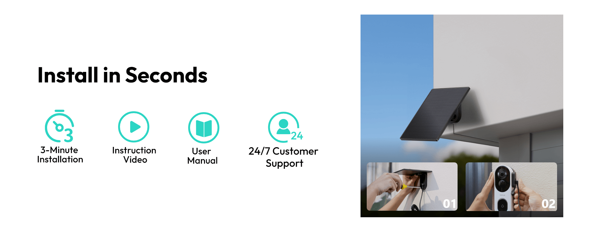 Uses renewable solar energy to lower electricity consumption, making your security setup more sustainable.Easy Installation