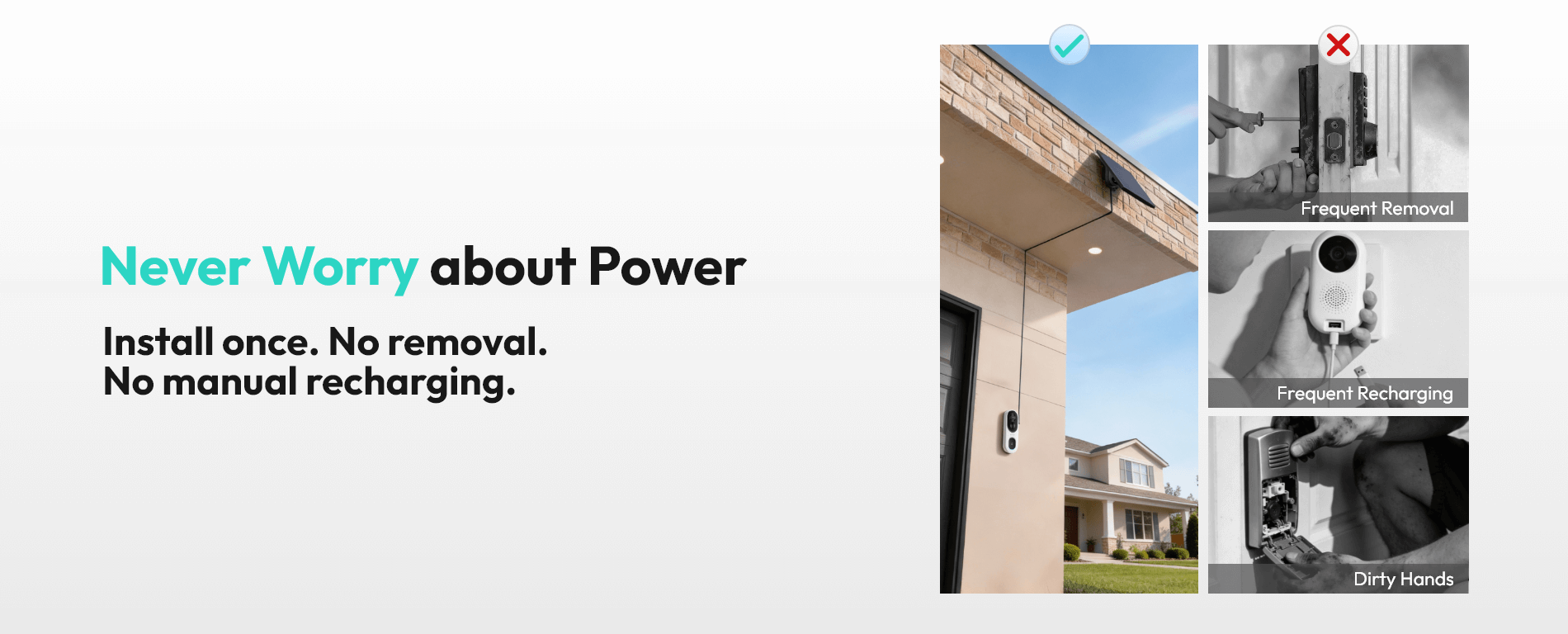 Modern USB-C connector designed specifically for Botslab doorbells. Delivers a cleaner, more secure, and future-ready power connection compared to traditional fork connectors.Continuous Solar Power