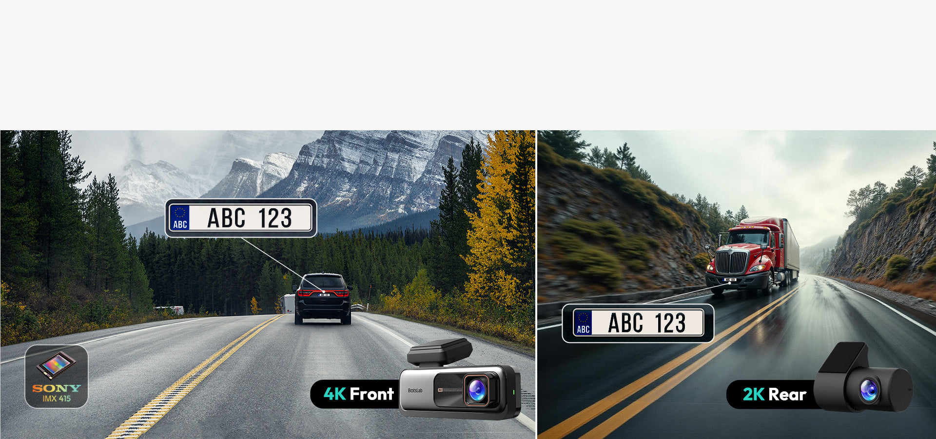 Sony IMX415 sensors deliver clear footage day and night with full front and rear coverage.