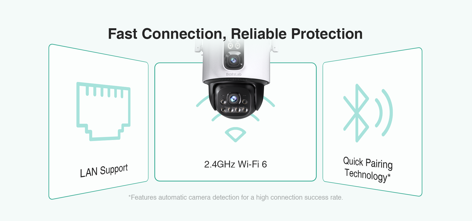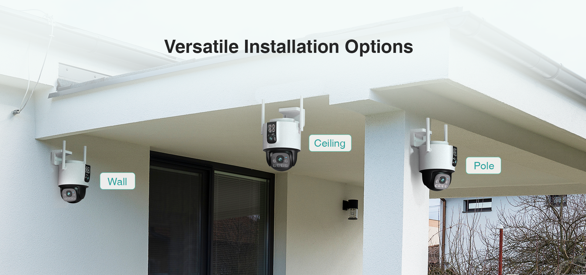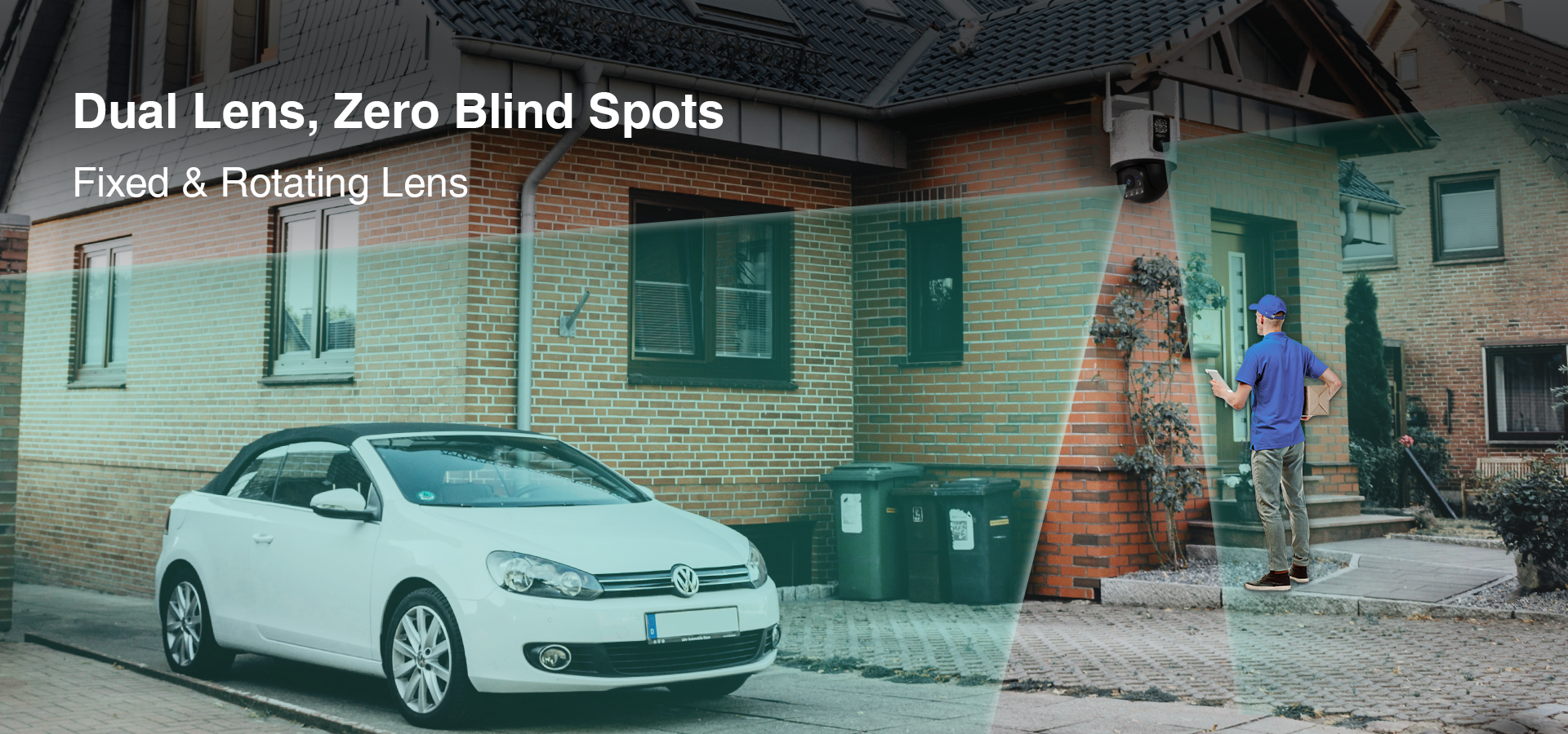 | Dual Lens & Dual View | Dual 4MP cameras — fixed lens + rotating lens, simultaneous dual live streams in app |