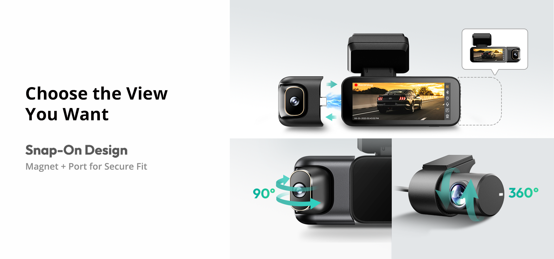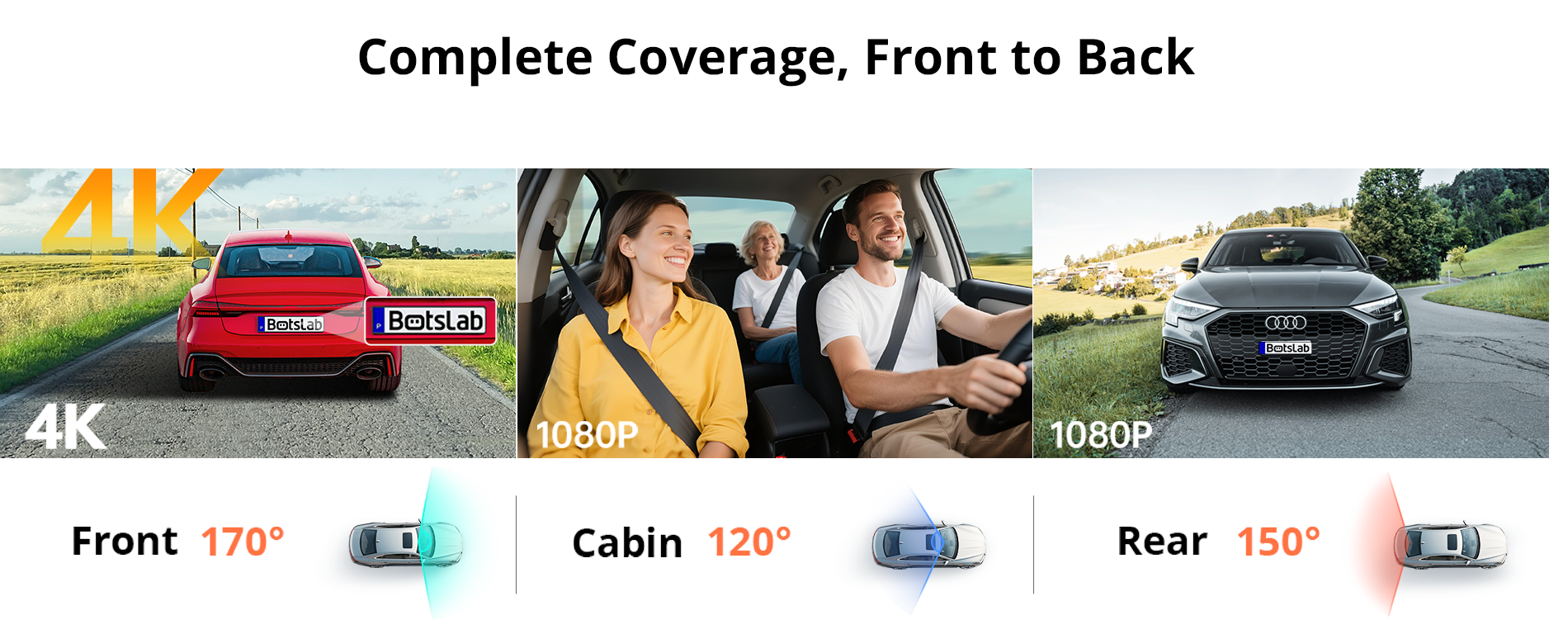 | 3-Channel Coverage | 170° Front • 120° Side • 150° Rear — 360° Total |