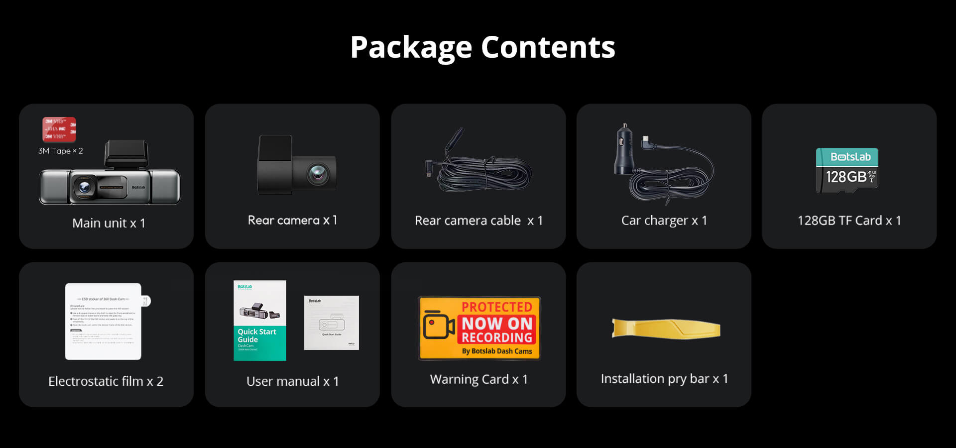 1. A dedicated hardwire kit is required for this function. 2. Automatically records a 1-minute emergency video when the front camera detects a person up to 5 meters ahead. 3. Initiates a 1-minute recording upon detecting a collision 4. Records 1 frame per second, up to 24 hours.